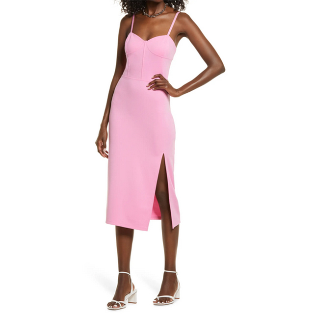 Available in pink and black, this knit dress will become your go-to for date nights and other special occasions.