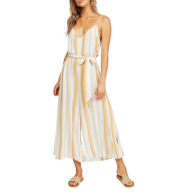 Easy breezy jumpsuits are the move this summer and every summer. We love how this one has a striped print and an ultra-flattering fit.