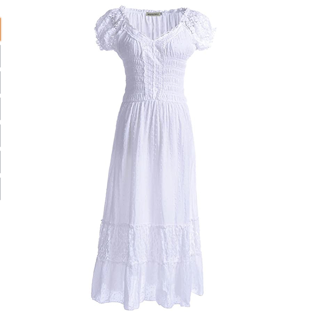 This boho dress is available in white, green, and navy blue floral prints. One SheIn customer raved, “This dress was just what its supposed to be! Beautiful, soft, flowy fabric. Pretty flower pattern. Good fit and length. I kind of feel like Katniss in the Hunger Games, but other than that, its one of my favorites.”