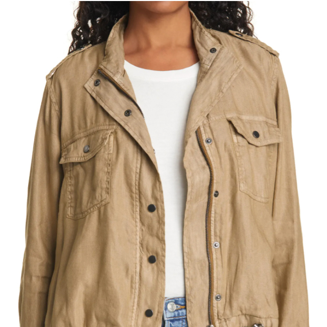 If you’re looking for something at a lower price point, this utility jacket is ideal for all your casual comings and goings. It’s available at Macy’s in plus, petite, and standard size options.