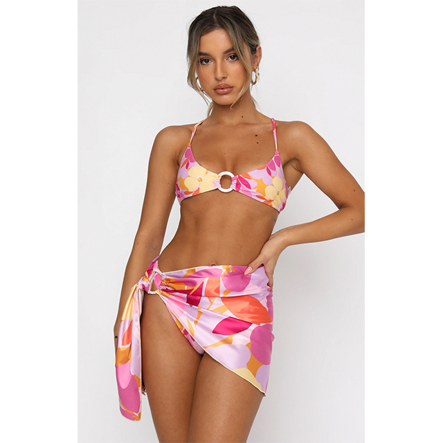 Turn up the heat this summer with this colorful retro fit! The sarong paired with the bikini top and bottom is the ultimate pool party look.