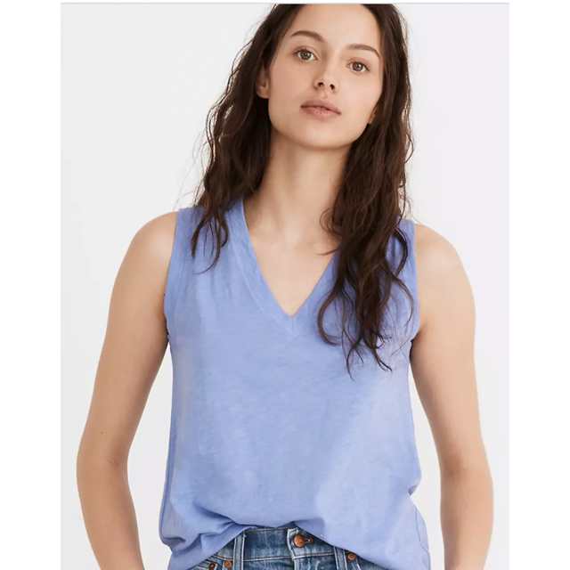 This v-neck tank is such a wardrobe essential. It looks polished, feels comfortable, and is ideal for layering throughout the year. It’s available in 10 different colors.
