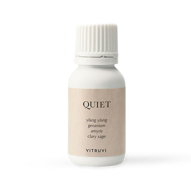 Give yourself the recharge you deserve with the Vitruvi Quiet Blend. It is a soft, floral aroma that smells like powdery petals and warm tea.