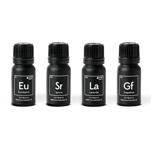 If you’re not sure where to begin on your essential oils journey, just add the Vitruvi The Essentials Kit to your cart. The set has their four most popular oils: calming Lavender, invigorating Eucalyptus, refreshing Spruce, and energizing Grapefruit. They blend well together and with other scents you adore.